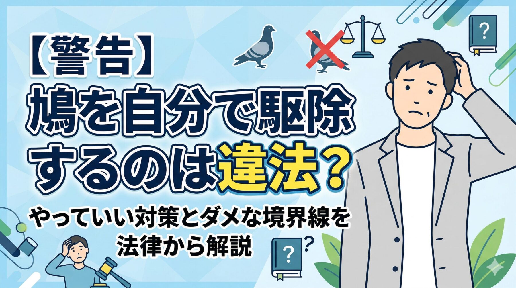 「ベランダの鳩の糞掃除にもううんざり……」「毎朝の鳴き声で目が覚めてしまう」 ベランダや屋根、軒下に鳩が居着いてしまい、糞害や騒音に頭を抱える方は実に多いものです。鳩の糞は建物を傷めるだけでなく、乾燥して舞い上がるとアレルギーや感染症などの...