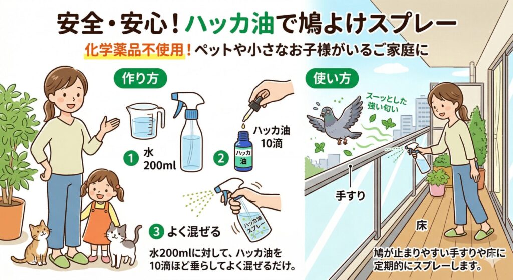• 100均グッズやハッカ油を活用し、鳩が嫌がる環境を作る