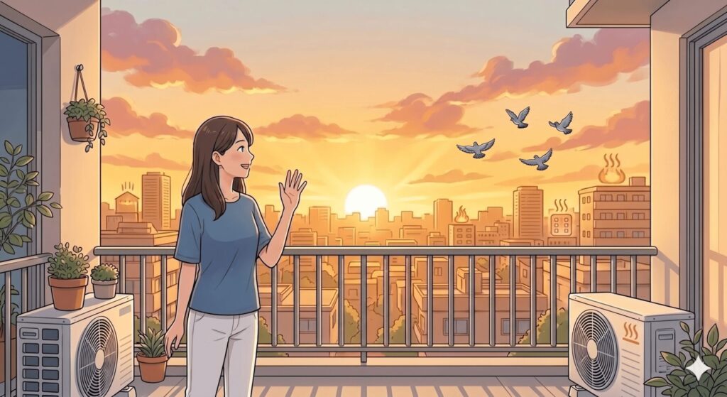 鳩被害を根本から解決するには、鳩の「動線」を断ち切る必要があります。飛来して手すりに止まる→安全を確認して床に降りる→室外機の裏に潜り込む、という一連の流れの中で、どこか一つでも「不快・危険」と感じさせれば、鳩は諦めやすくなります。スパイクと忌避剤を組み合わせて、着地ポイントを徹底的に奪いましょう。