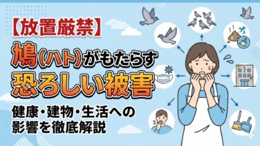 はじめに「ベランダにまた鳩のフンが落ちている…」 毎日のように繰り返される鳩の被害、本当にうんざりしますよね。景観が損なわれるだけでなく、洗濯物が干せなくなったり、悪臭に悩まされたりと、生活への悪影響は計り知れません。しかし、鳩のフンの本当...